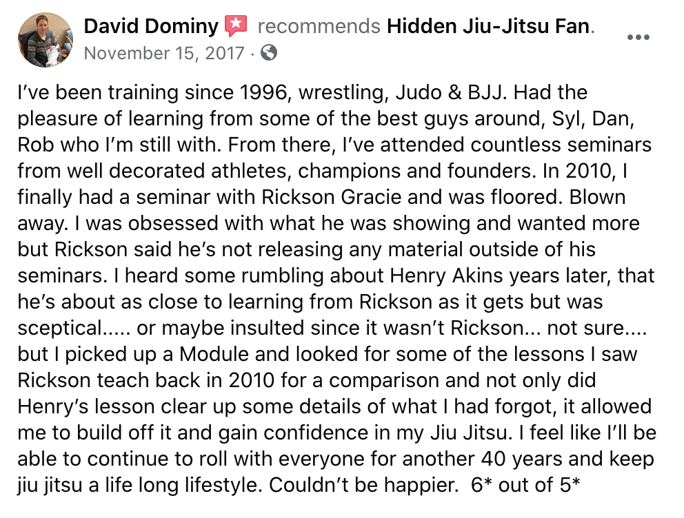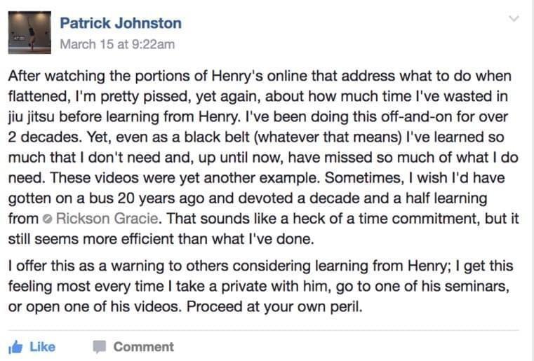 "I would take Henry's stuff and use it as my 'secret Jiu-Jitsu hack' for years... Every time he's here he shows something new, magical, that is game changing."