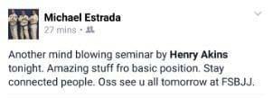 "I've been coming to train with Henry off and on for years and today's seminar was just literally... I know it's cliche, but mind blowing.