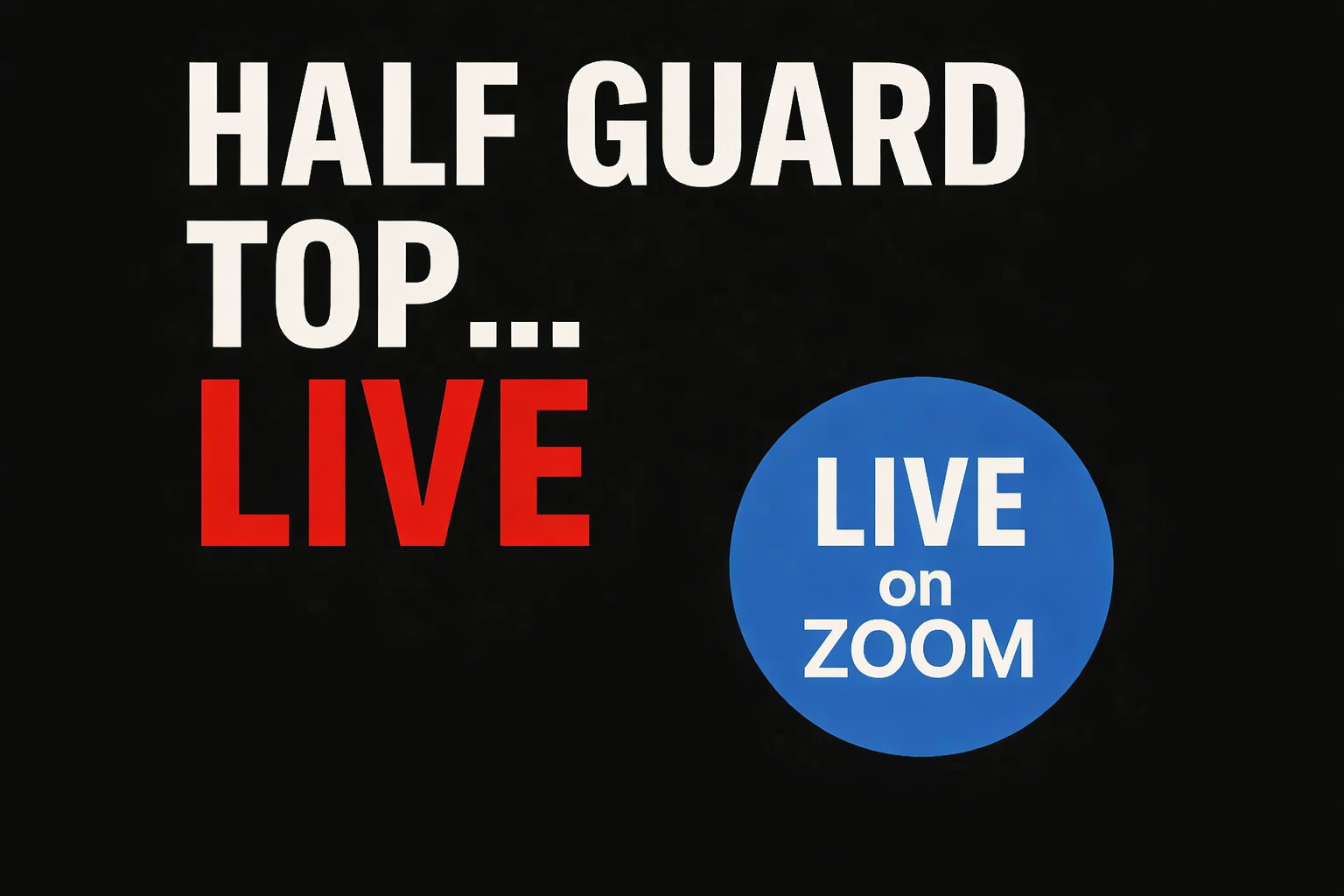 This is "Half Guard Top ... LIVE!". We start by ripping apart everything you've been taught about "posture" and "driving"... and replacing it with what actually happens when you use gravity correctly.